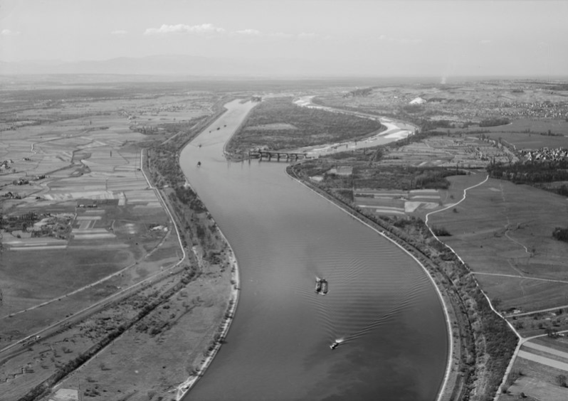 Das vorläufig letzte Kapitel der fragwürdigen Nutzbarmachung des Oberrheins wurde mit der Schaffung des „Grand Kanal d´Alsace“ eingeleitet, mit dessen Bau 1928 begonnen wurde. Die rechtliche Grundlage dafür bot der Versailler Vertrag von 1919, in dem Frankreich das Recht erhielt Wasser, aus dem Oberrhein auszuleiten und Energie durch die Nutzung der Wasserkraft zu gewinnen. Von Basel bis Breisach wurde das alte Bett des Rheins von einem neuen Seitenkanal umgangen und dabei von der normalen Wasserzufuhr gänzlich abgeschnitten. Da bei einer kontinuierlichen Fortsetzung des Seitenkanals bis nach Straßburg neben einer Versteppung der restlichen Oberrheinaue auch der Niedergang des Rheinhafens Breisach zu erwarten war, brachte der Staatsvertrag vom 27. 10. 1956 der Landschaft am Oberrhein den Kompromiss einer Teilkanalisierung zwischen Breisach und Straßburg: die Schlingenlösung. So entstanden in den Jahren 1928-1977 insgesamt zehn Staustufen.