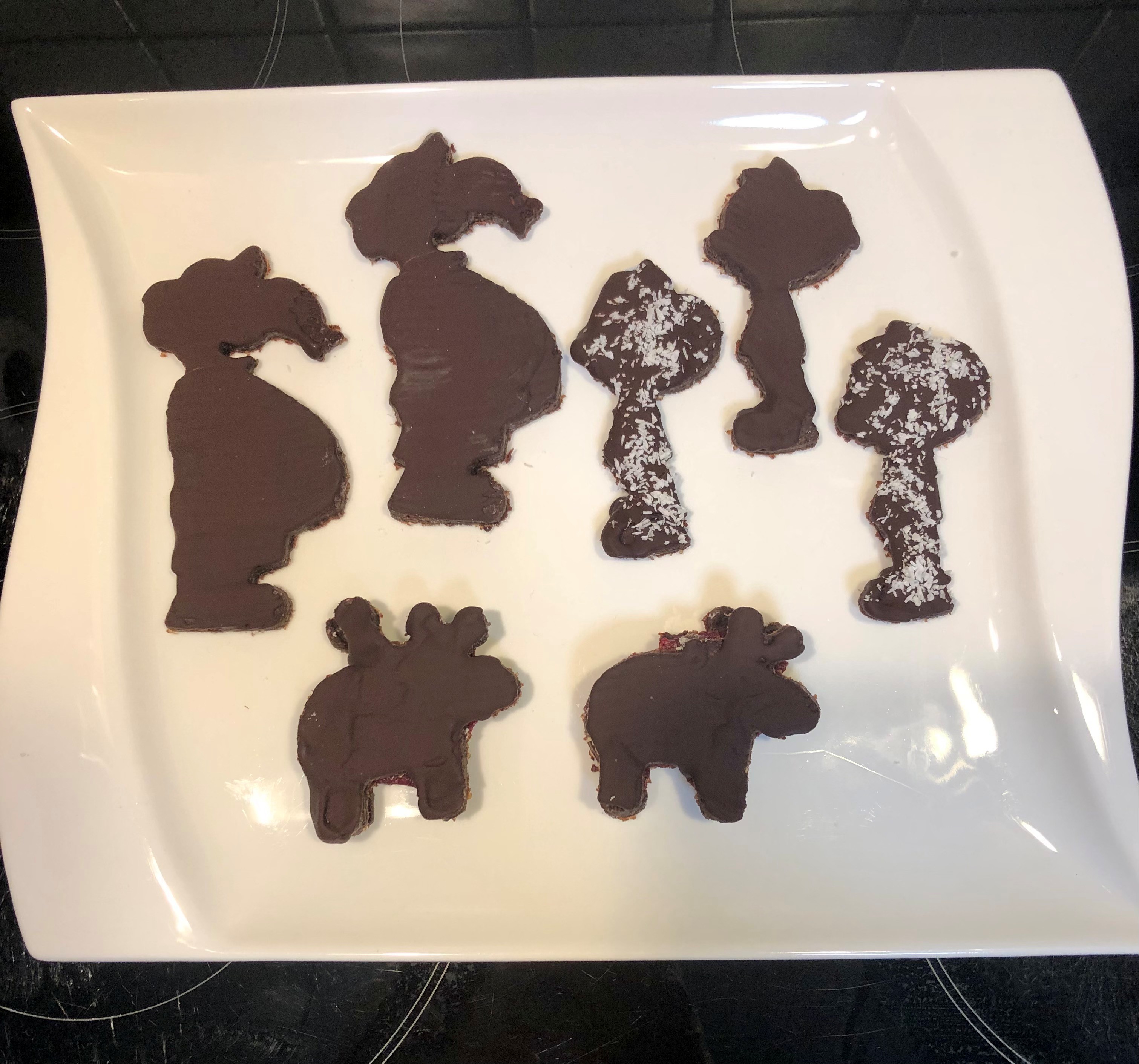 6. danach die Schokolade schmelzen, die Plätzchen damit bepinseln und nach Lust und Laune verzieren
